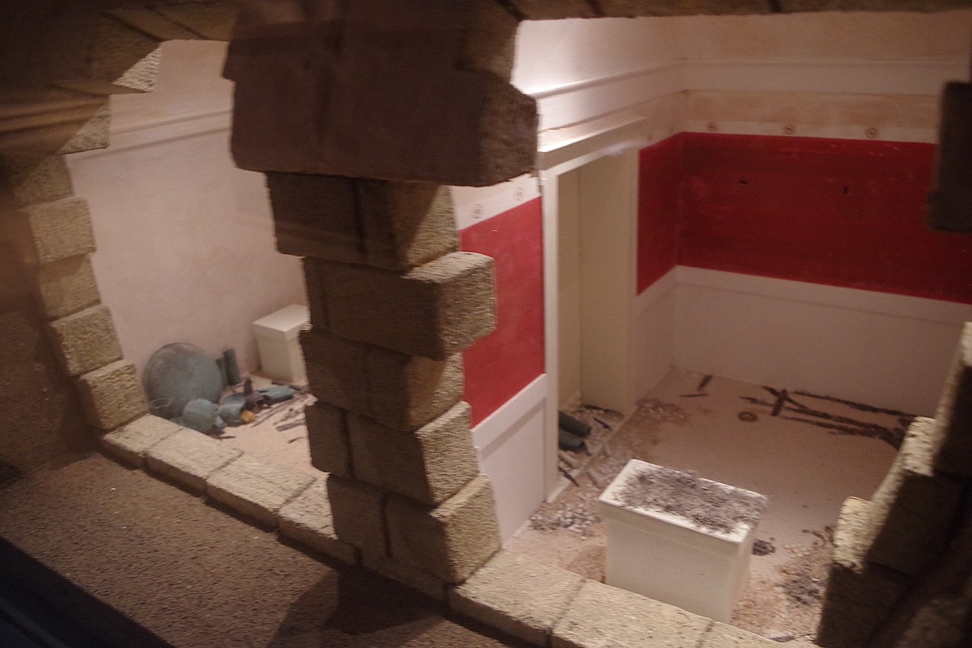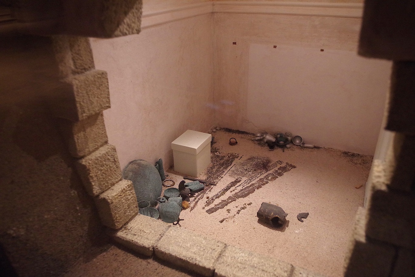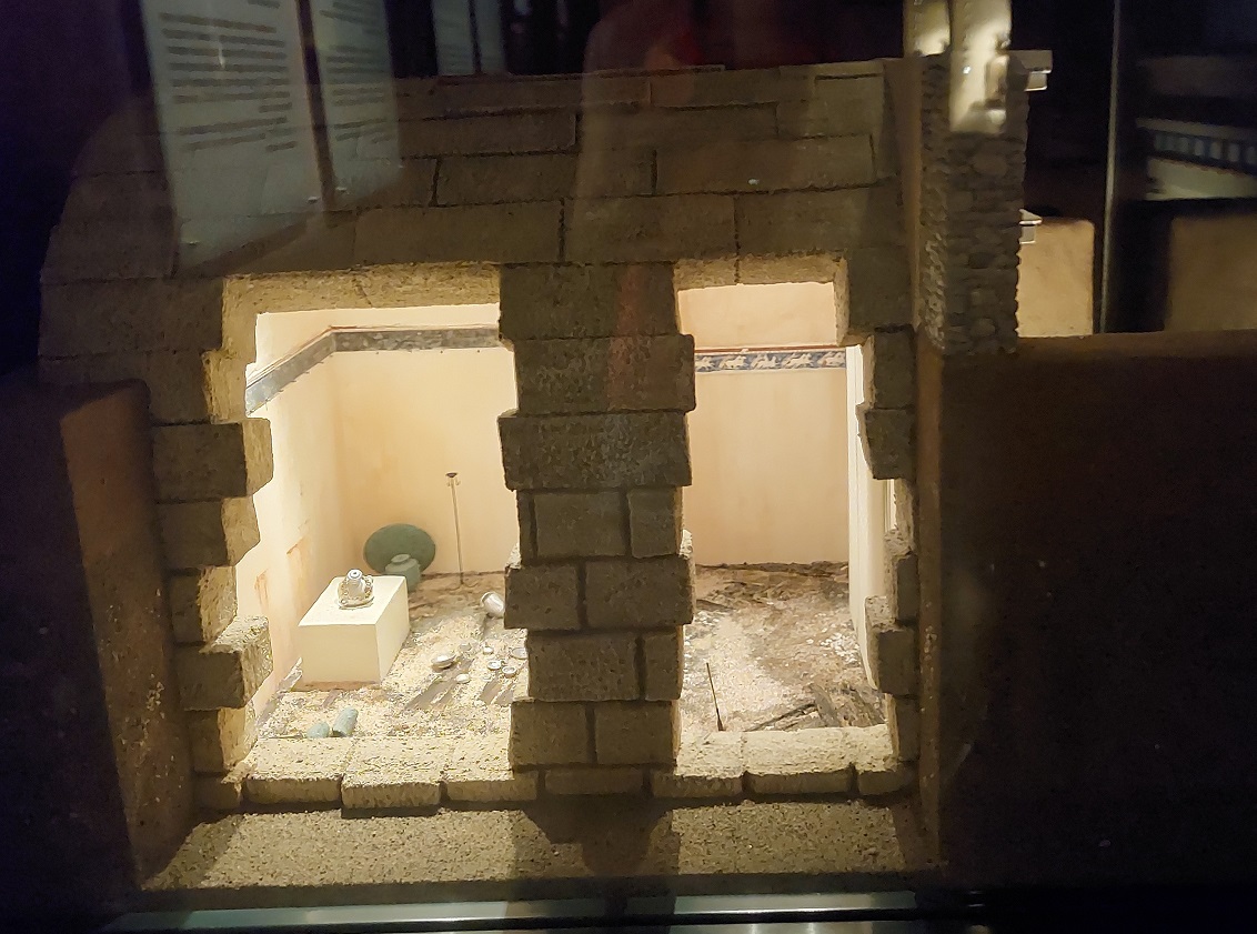 Estas tumbas no dejan de tener cierto parecido con las tumbas tracias que vimos unos días atrás en Bulgaria, en Starosel y en Kazanlak. Abajo podéis ver una pequeña maqueta del interior de las tumbas II y III que tienen allí expuesta. Ambas son similares y tienen dos cámaras, la primera sería una especie de vestíbulo, y la segunda donde estaría los féretros o urnas con los restos de los difuntos.