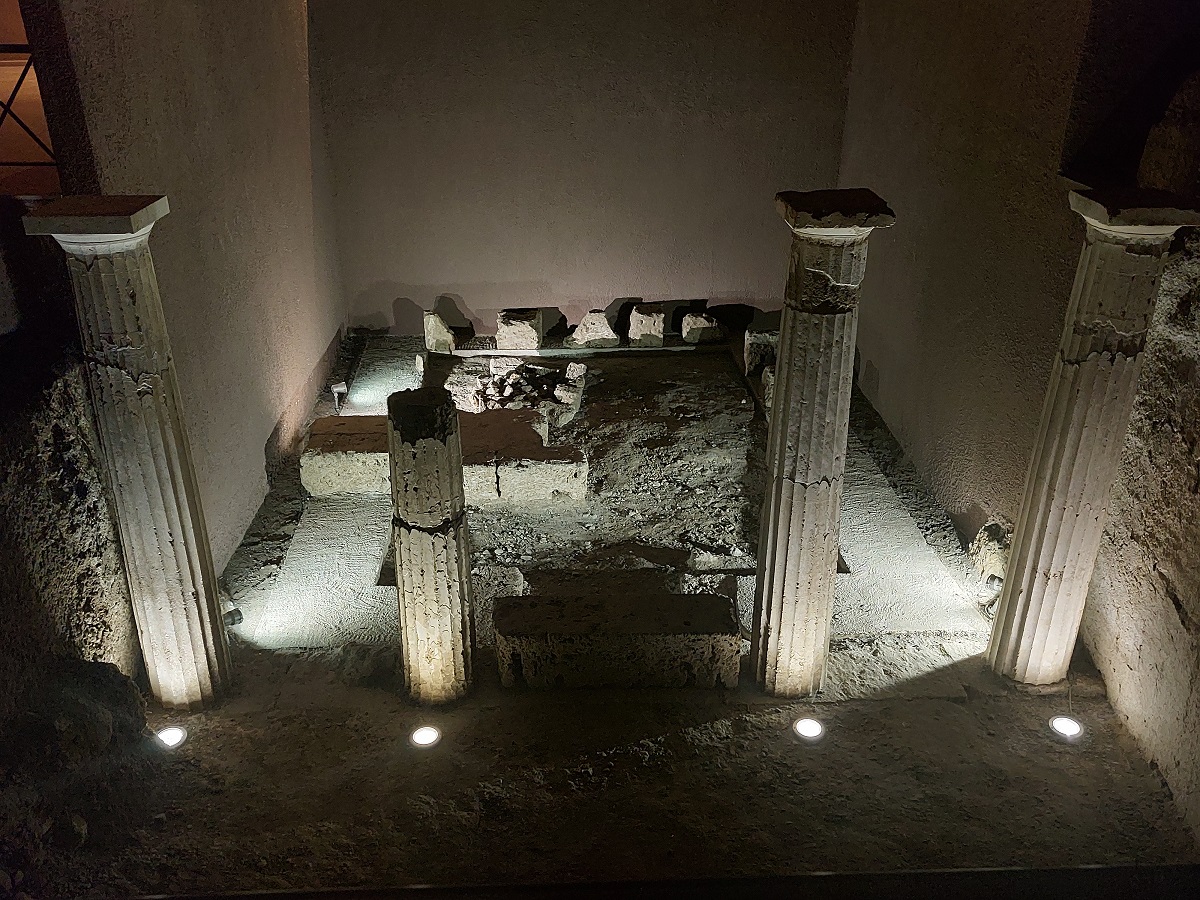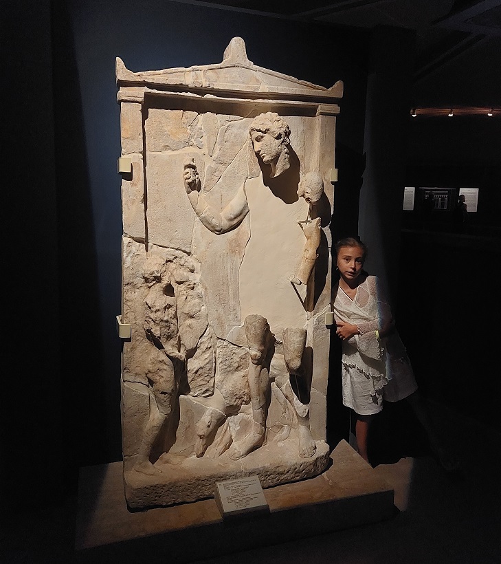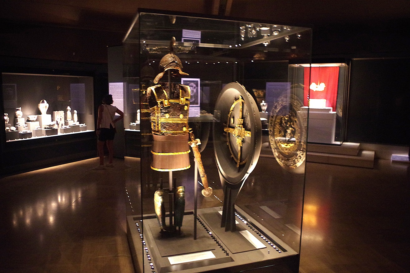 Como podéis ver, es una pasada. Multitud de objetos de todo tipo: cotidianos, armas, joyas hechas en oro macizo... y conservados en perfecto estado, tal y como los dejaron allí los macedonios hace 2300 años. Abajo, la entrada a la tumba II, en la que se encontraron unos restos humanos que se piensa son del rey Filipo II. No se puede pasar al interior de las tumbas, están cerradas, y lo único que se puede admirar es su entrada. Como podéis ver por las fotos, todo el recinto está bastante a oscuras, excepto los objetos o sitios de interés, para crear una atmósfera especial.