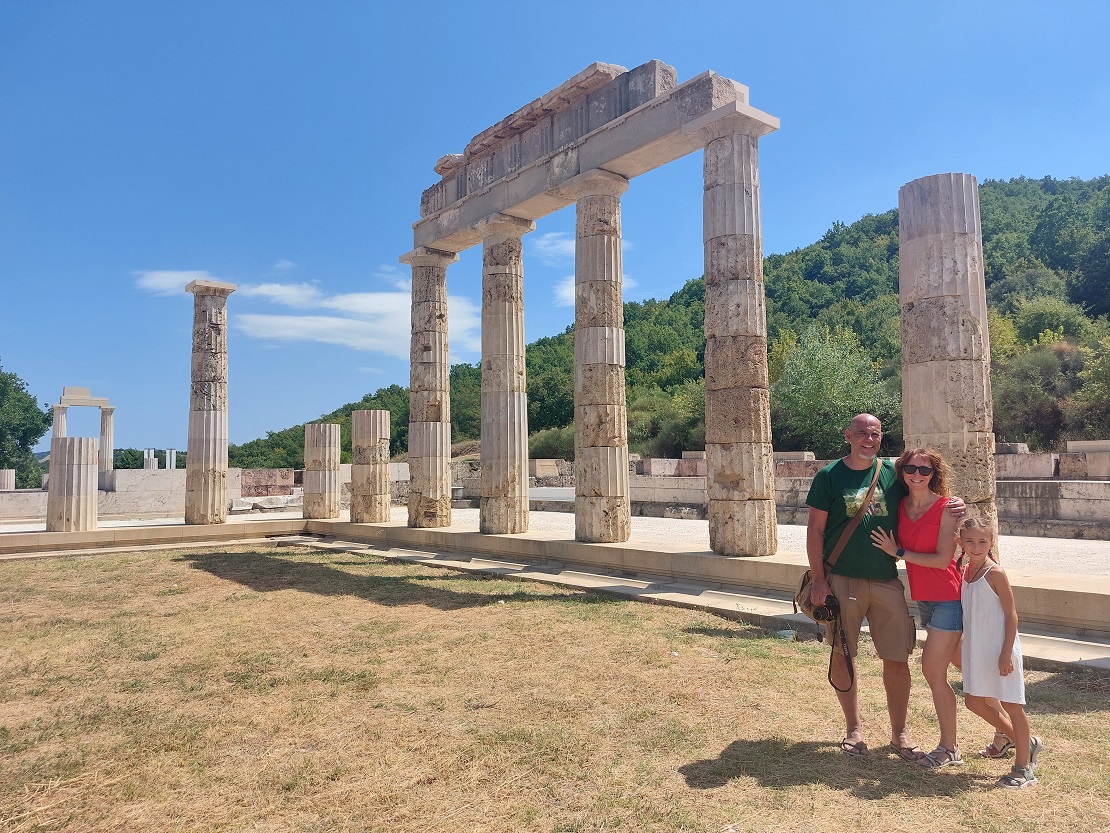 Después de la visita al santuario de Dion, en una hora más nos plantamos en Vergina, donde están las ruinas de la antigua capital real del reino de Macedonia. Carano, el primer rey macedonio, fundó la ciudad aquí porque según el oráculo debía hacerlo en un lugar donde encontrara cabras, y eso ocurrió aquí, que es un lugar montañoso. Aigai significa en griego "el lugar de las cabras".