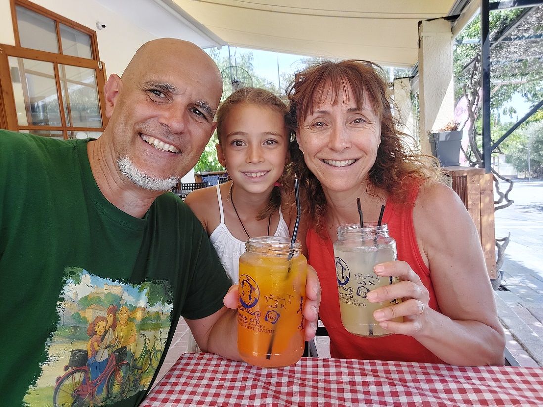 Volvimos por donde habíamos venido. En los alrededores de las tumbas hay unos cuantos restaurantes con terraza donde poder comer, así que elegimos uno de ellos, donde comimos bastante bien a base de una ensalada y varios platos de carne a la parrilla, y unos buenos zumos naturales, como podéis ver en la foto de arriba. Pagamos 48 euros en total por la comida. Desde aquí, emprendimos ruta hacia el destino final del día, el pequeño y pintoresco pueblo de Melnik, ya en Bulgaria. Algo menos de dos horas y media en total.