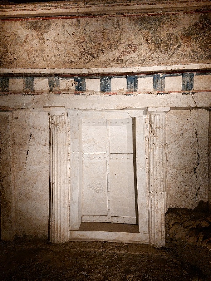 Abajo, fotos de la fachada de la otra tumba, la III, muy similar a la anterior. Estas tumbas son para la cultura griega, como la de Tutankamon para la egipcia. Es realmente raro y sobre todo muy valioso encontrar una tumba intacta, por la gran cantidad de objetos que se guardan en ellas, y que casi siempre han sido expoliados desde muy antiguo.