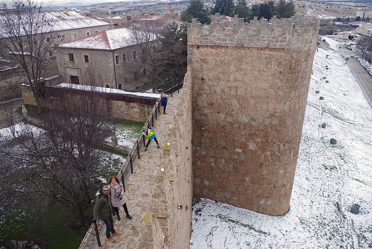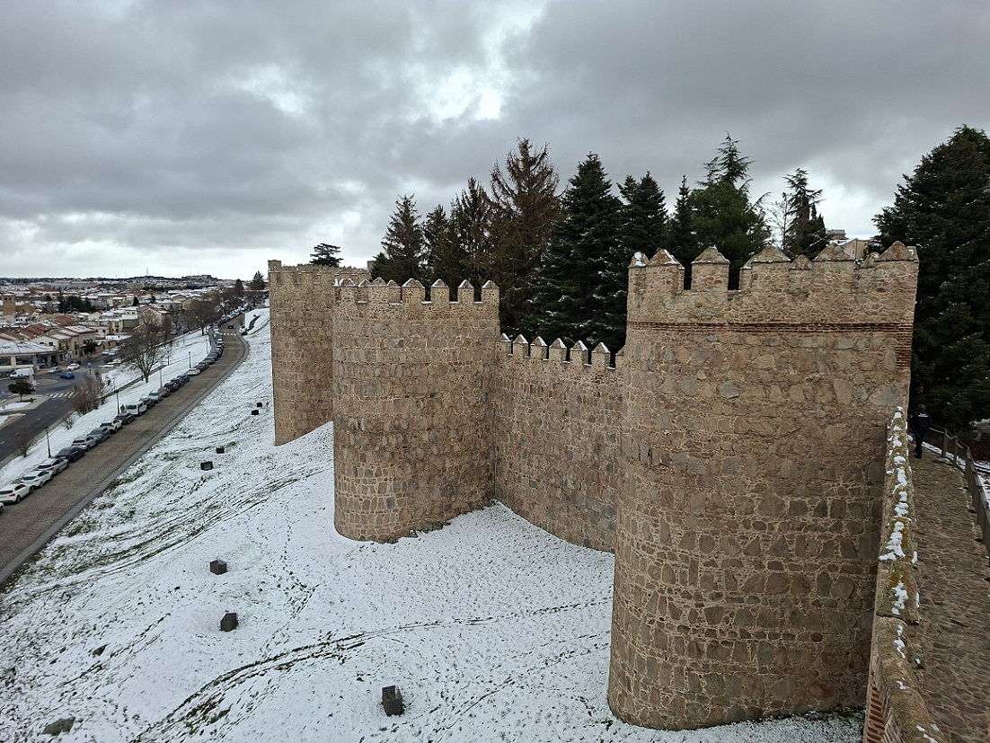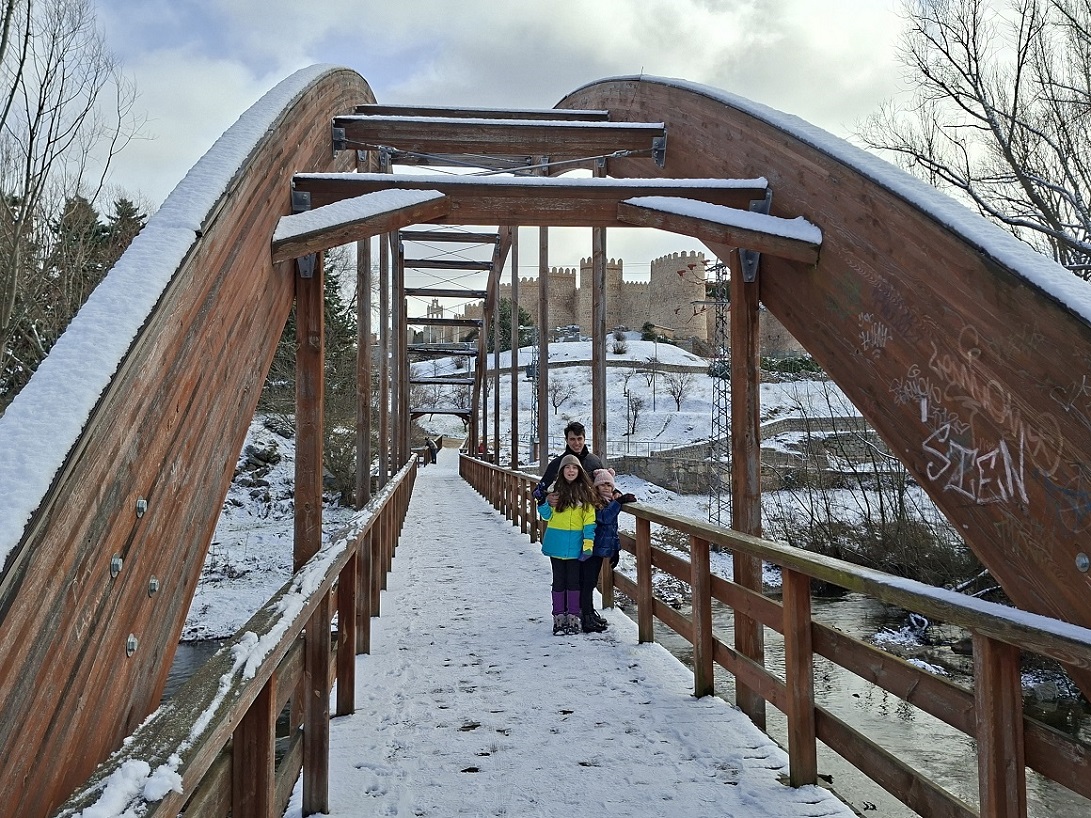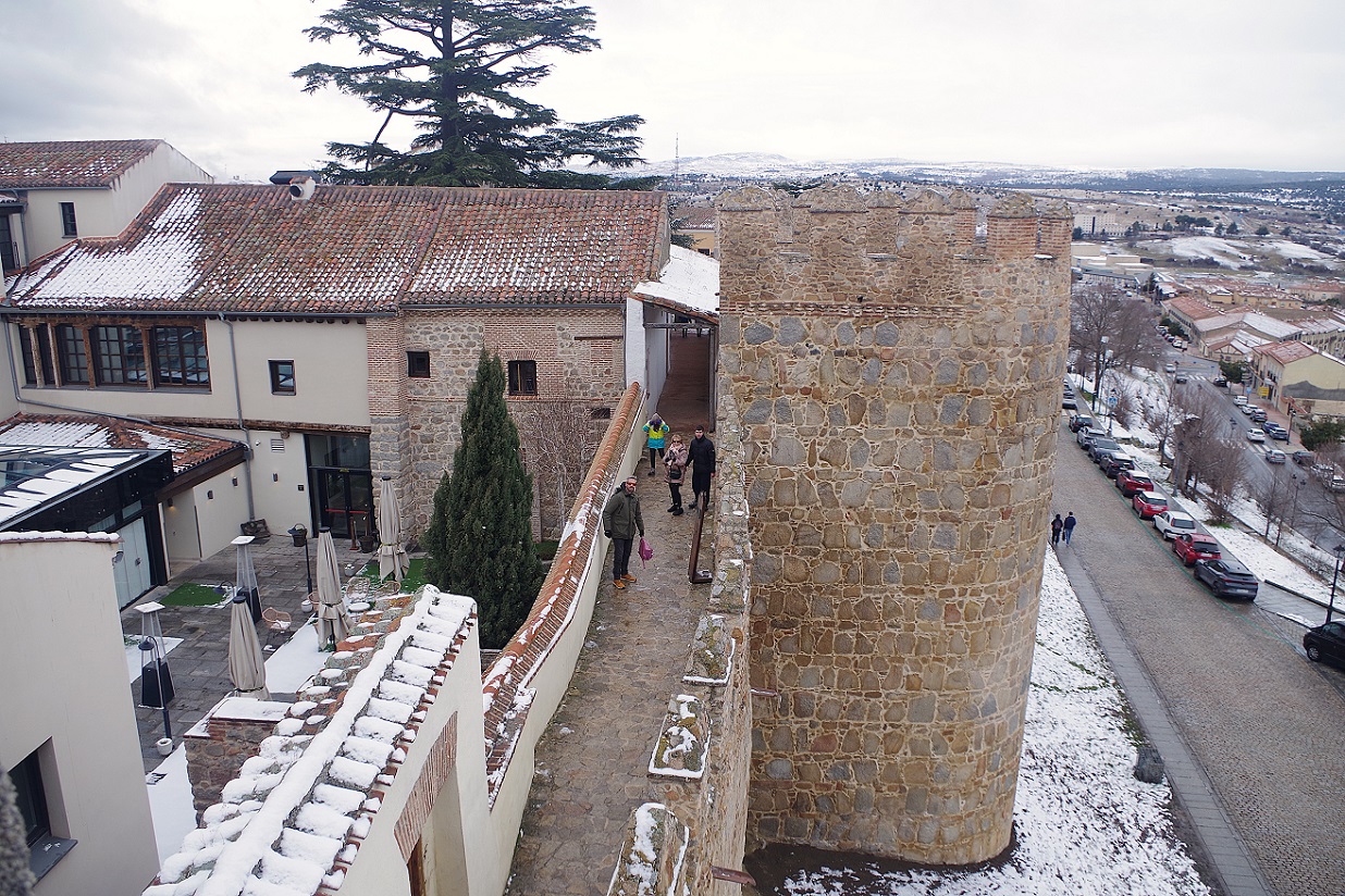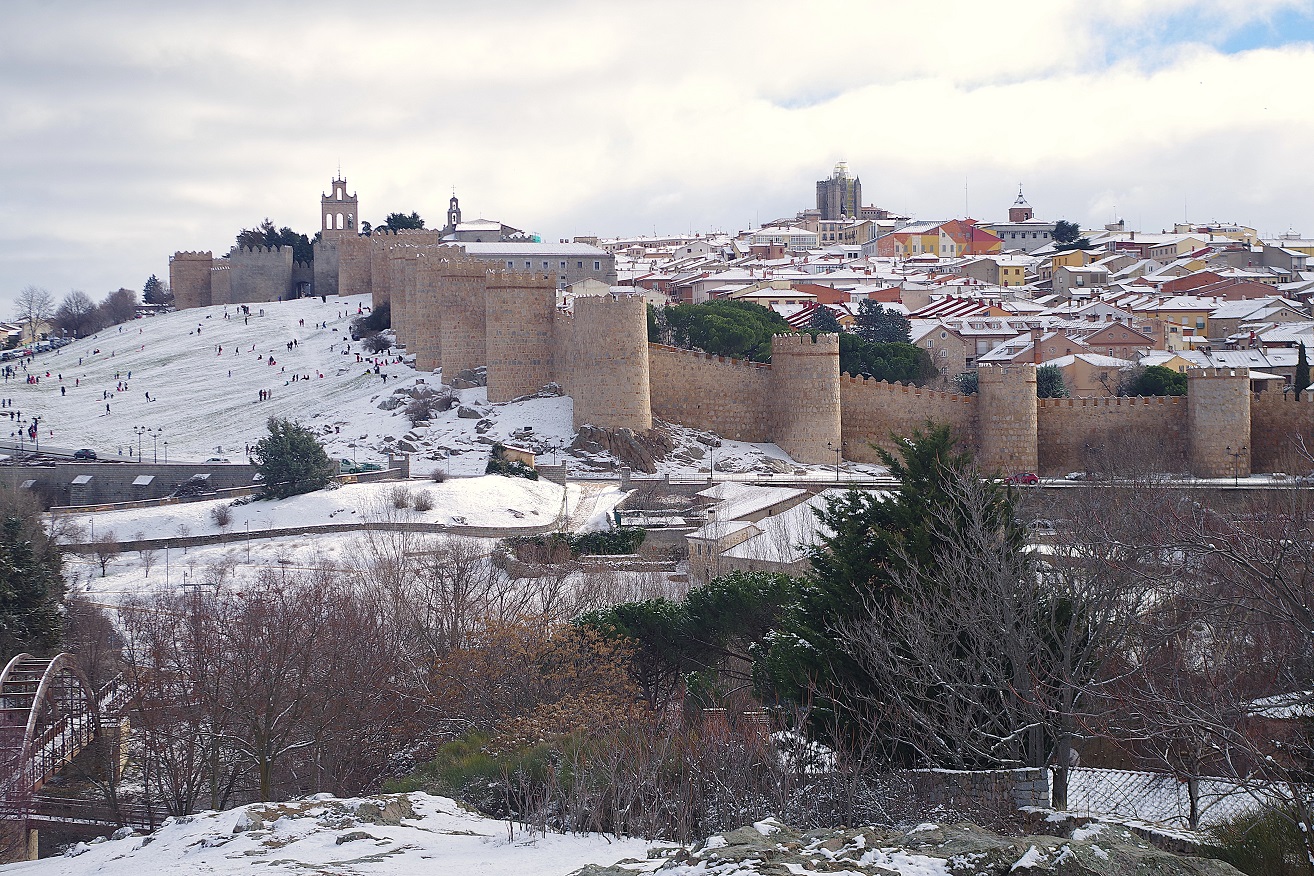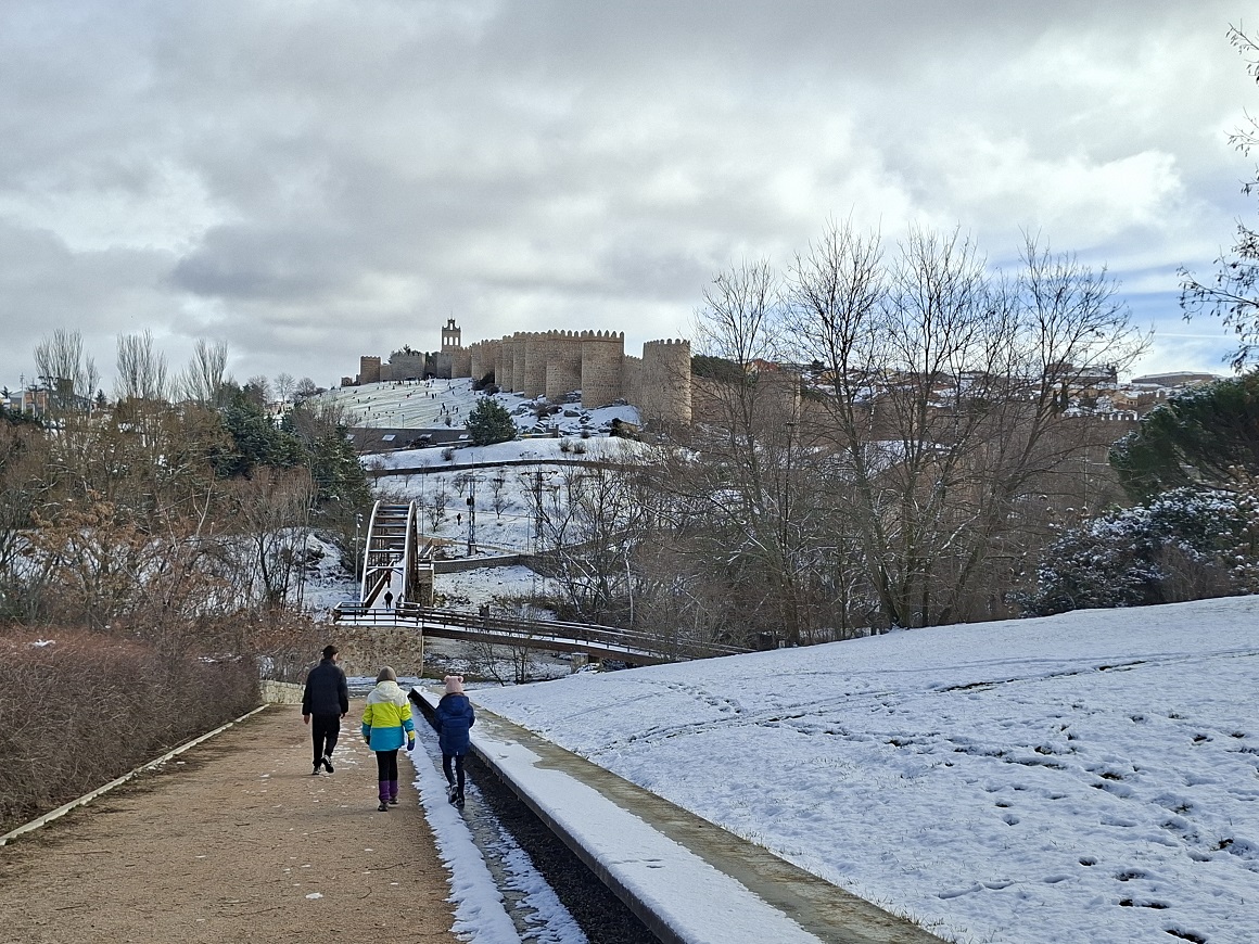 Desde aquí hay un paseo muy bonito hasta el casco histórico, bajando por un camino hasta el puente que cruza el rio Adaja, y luego una pendiente de subida hasta la muralla. En las fotos de abajo podéis ver la fantástica vista que hay del conjunto amurallado desde este mirador, no hay otro lugar mejor para tener una panorámica como ésta. Y encima con nieve, más espectacular. No es de extrañar que Ávila fuese declarada por la UNESCO Patrimonio de la Humanidad en 1985.