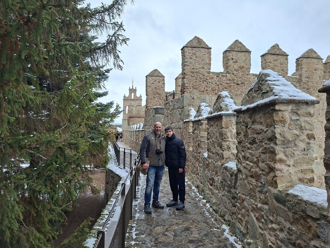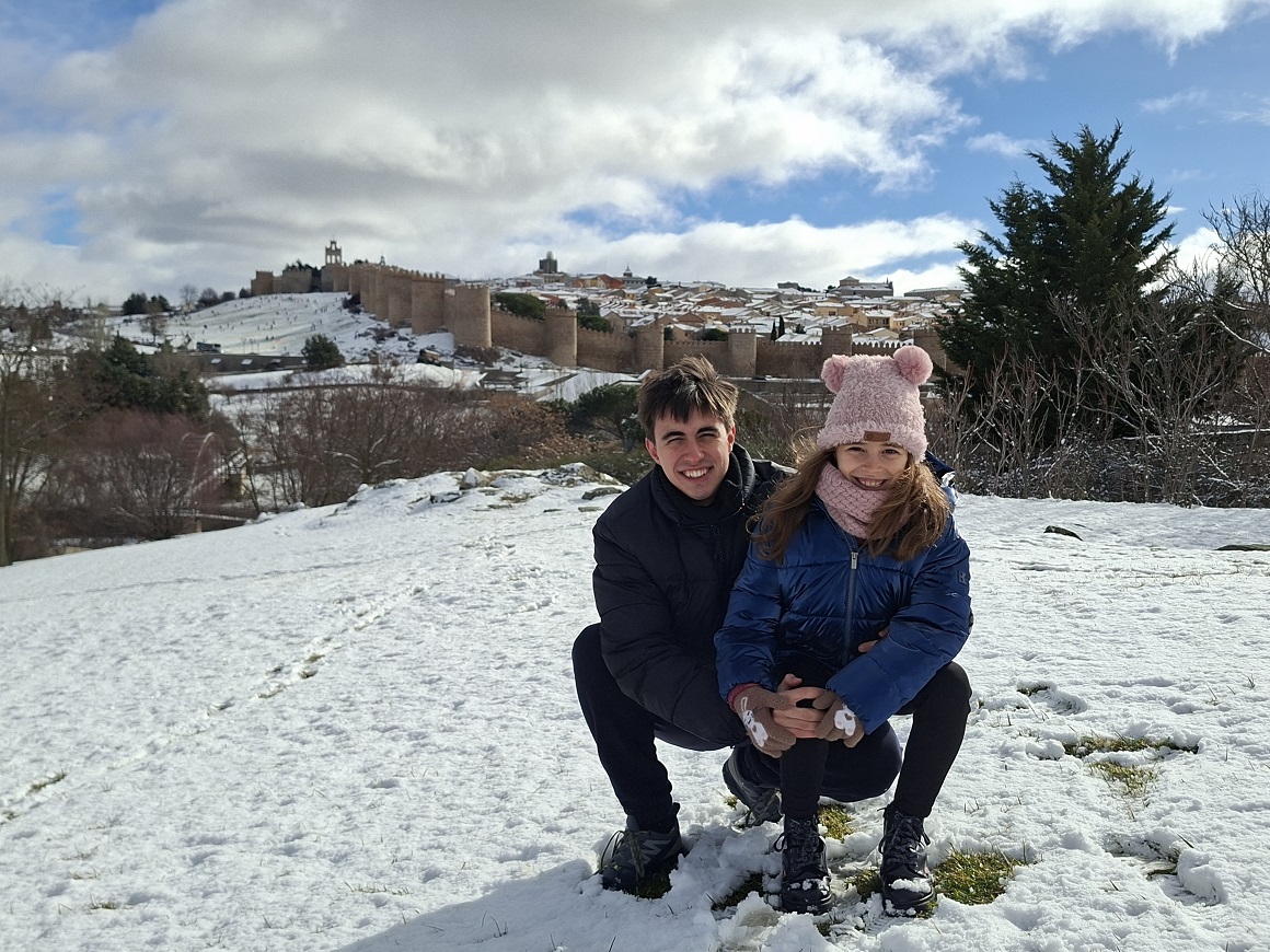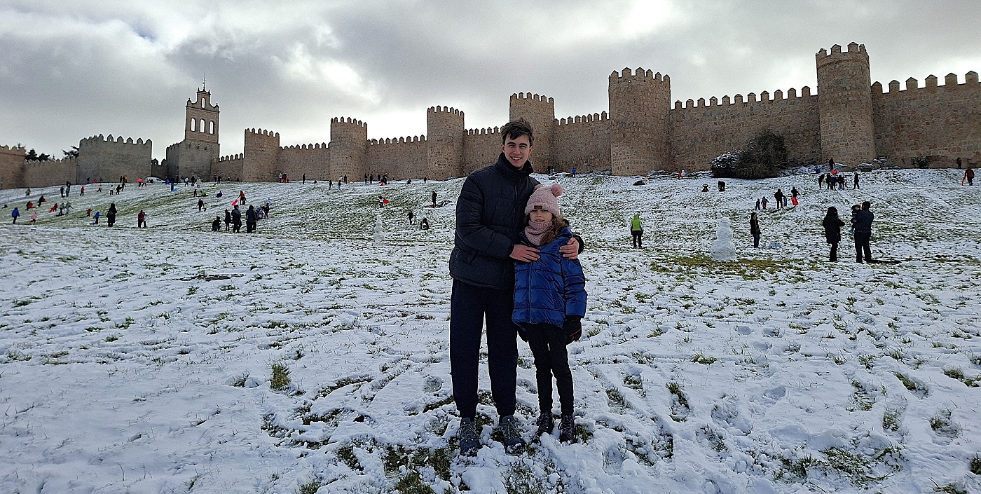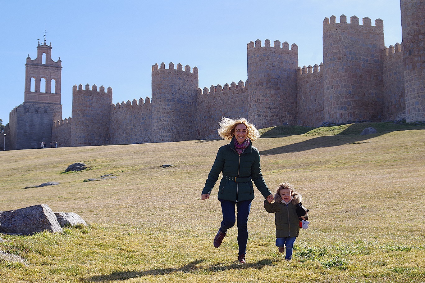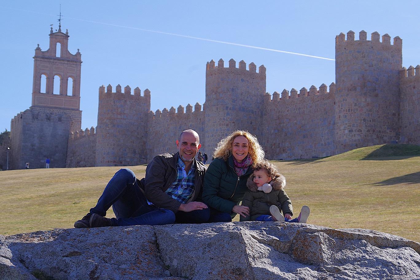 Aquí abajo, un par de fotos de la anterior vez que visitamos Ávila, en febrero de 2019, y sin nieve. La muralla sigue igual, pero es increible lo que ha crecido Inés desde entonces... aunque todavía sigue conservando su muñeco de Mickey.