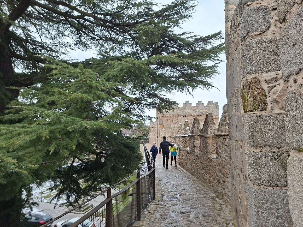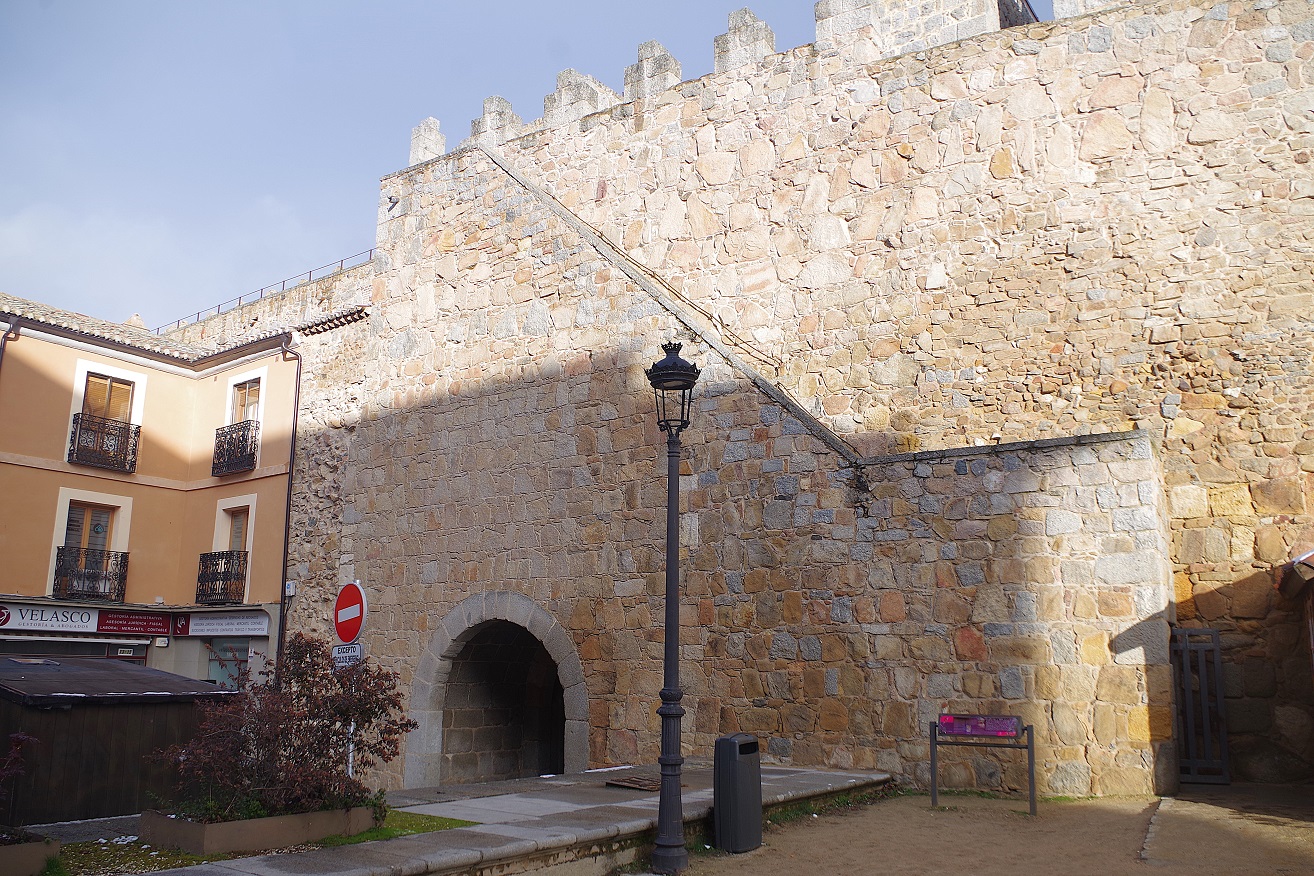 Y desde el puente, por una zona de parque, no hay más que seguir el camino en zig-zag hasta llegar a la carretera, que cruzándola, nos deja ya al pie de la muralla. Aquí podemos elegir entre entrar en la ciudad por la puerta del Adaja, la situada más al oeste de la muralla, y que es la que nos queda más cerca. Nosotros esa ruta la dejamos para la vuelta, ya de noche, al ser más directa.