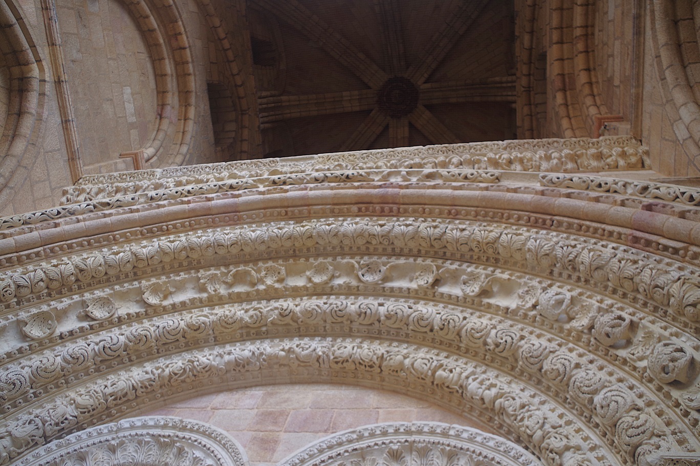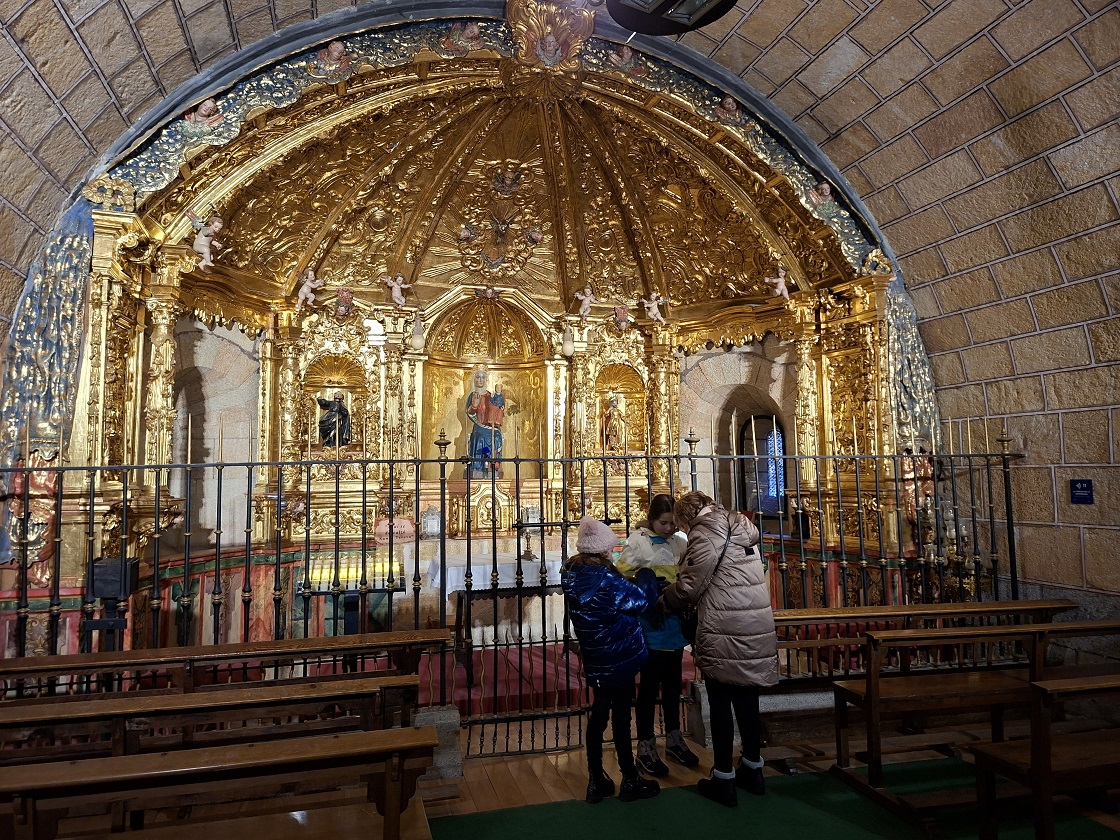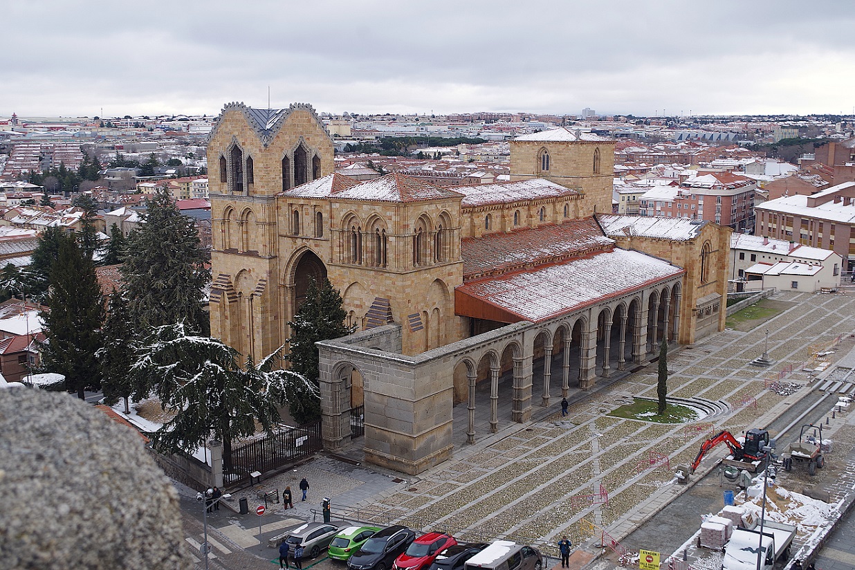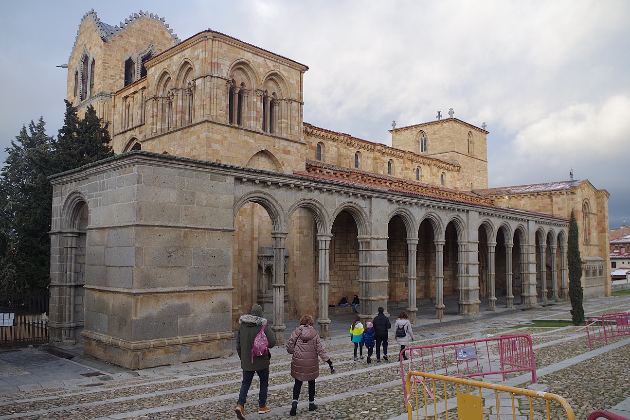 Llegamos por los pelos, ya que la última entrada a la iglesia es a las 18:30. El precio fue de 3 euros por adulto y las niñas gratis. Esta iglesia, de estilo románico tardío, fue levantada a finales del siglo XII y principios del XIII, y es una de las más importantes de la ciudad, ya que en ella se guardan los restos de los tres santos patronos de Ávila: los jóvenes hermanos Vicente, Sabina y Cristeta, que fueron martirizados por los romanos en el siglo IV por ser cristianos. La iglesia fue construída en el lugar donde ocurrió aquello ¿Y cómo sabían que ese era el lugar exacto? Porque ya desde el siglo IV, no mucho después de la muerte de los santos, se levantó aquí una primitiva capilla tardo-romana para conmemorarlo, que después fue sustituída por una iglesia visigoda, seguramente arradasa durante la invasión musulmana, y por fin en el siglo XII sobre aquellos restos se hizo esta iglesia.