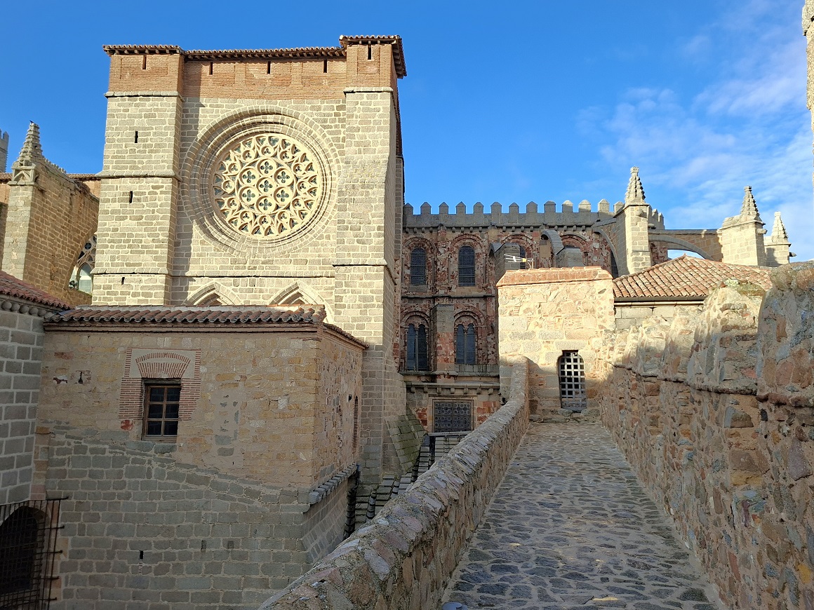 Esta catedral, que se empezó a construir en el siglo XII sustituyendo a una iglesia mozárabe que estaba en ruina por los ataques musulmanes, está considerada la primera catedral gótica de España, y se diseñó para que su ábside formara parte de la muralla como un torreón más. Era una época en que Ávila estaba cerca de la frontera con el territorio musulmán, y los ataques eran frecuentes.