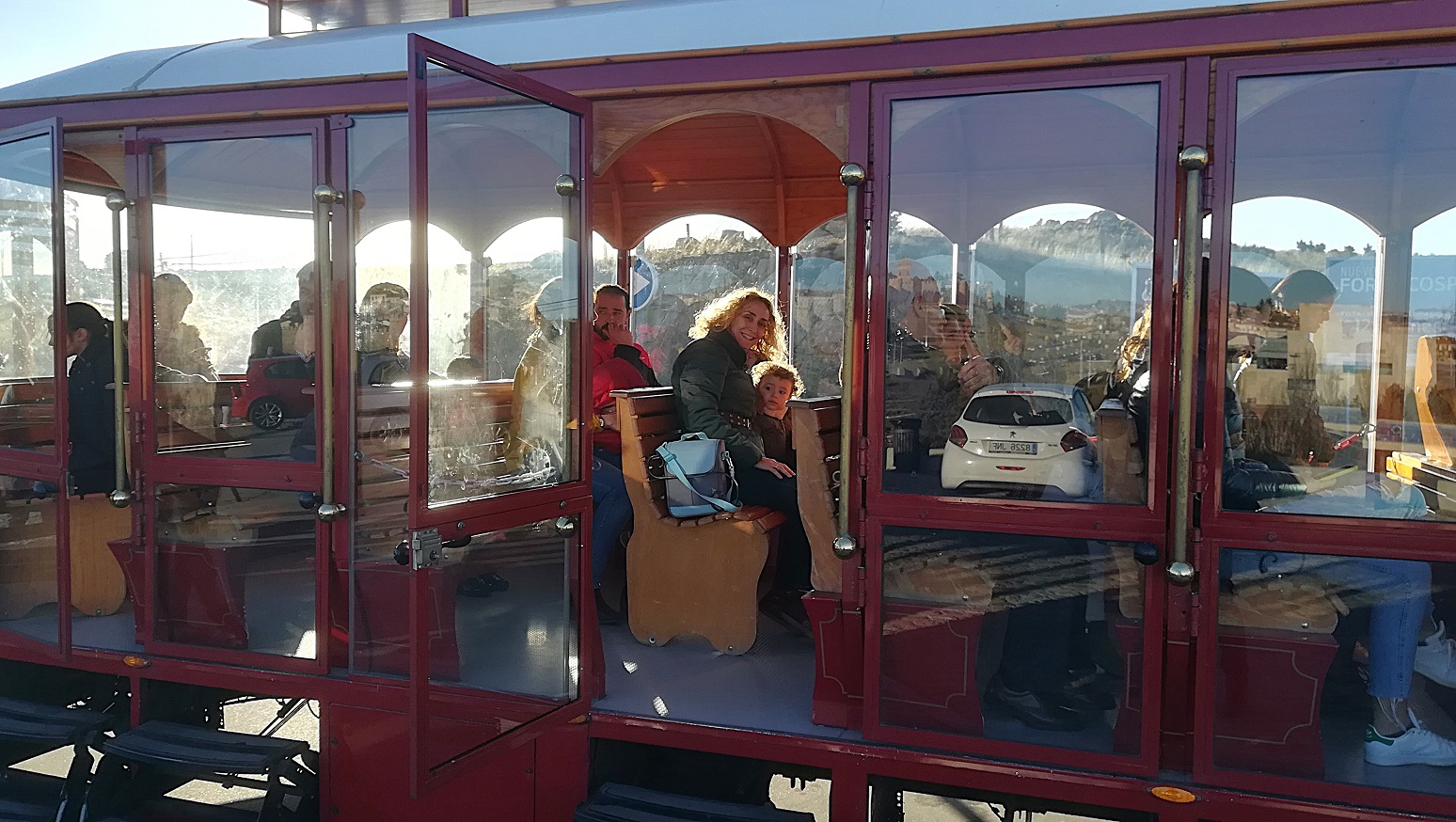 Y nada más salir por la monumental puerta de San Vicente, ahí tenemos la iglesia, esperándonos para la visita. Abajo, fotos de esa entrada de la muralla, que es además donde para el trenecito turístico que te hace una visita por la ciudad. En esta ocasión no lo cogimos, pero en la visita que hicimos en 2019, cuando Inés era más pequeña, sí que montamos.