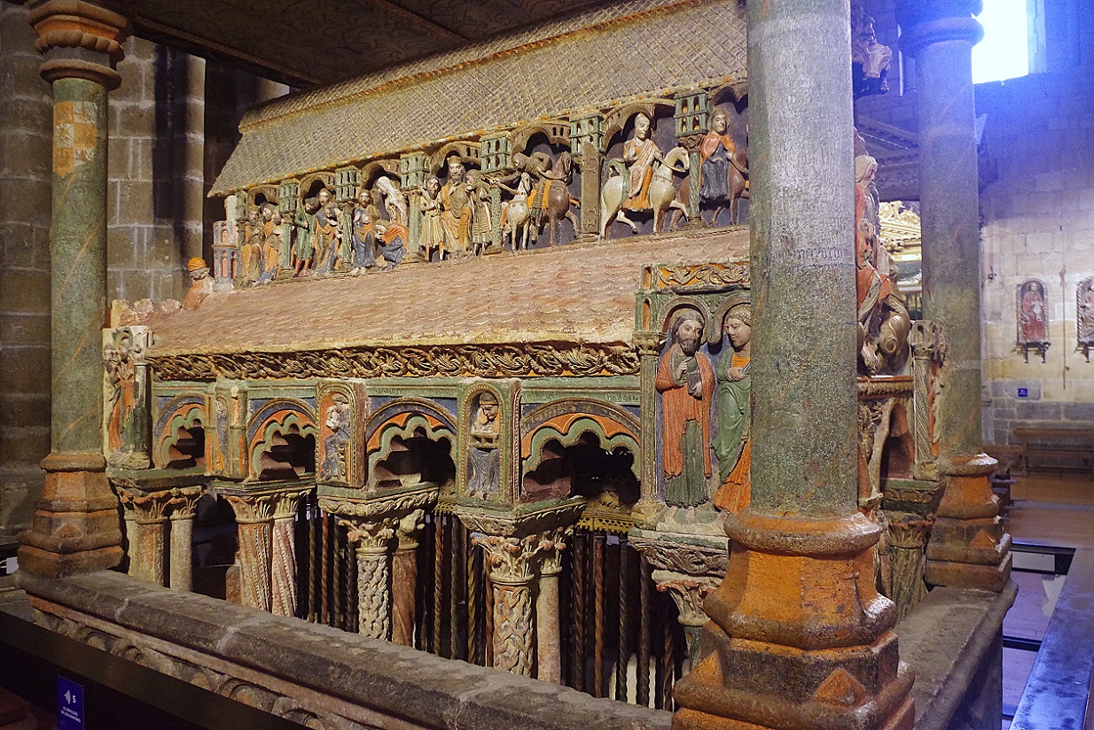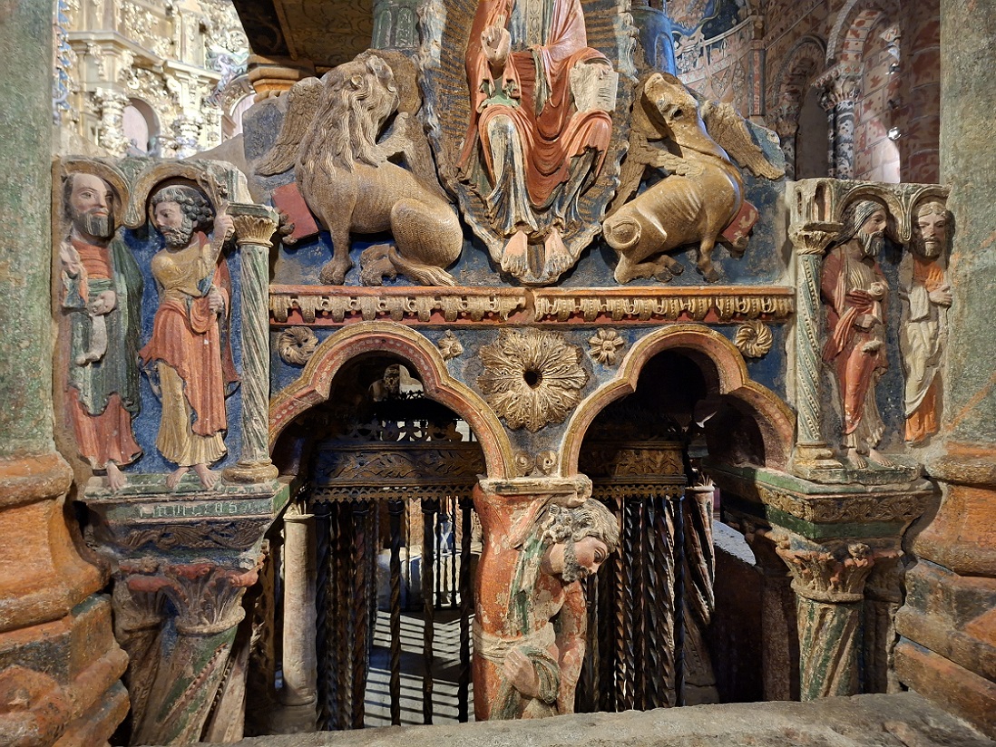 Sin duda lo que más llama la atención de esta iglesia es el relicario hecho para guardar los restos de los tres santos (aunque los restos se guardan en unas urnas en el altar mayor). De piedra policromada, es una de las obras más sobresalientes de la escultura románica en España, y se conserva perfectamente en todos sus detalles.