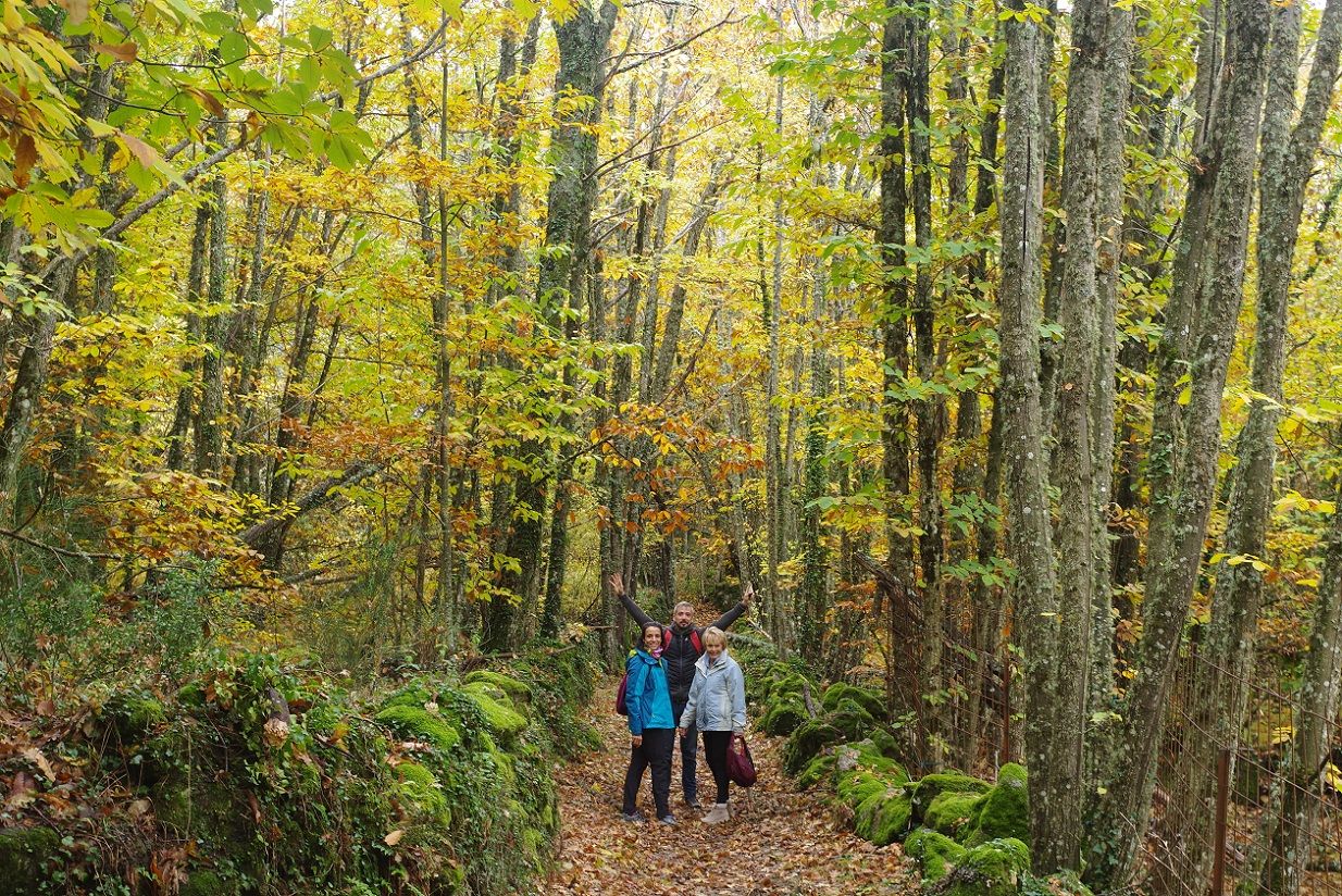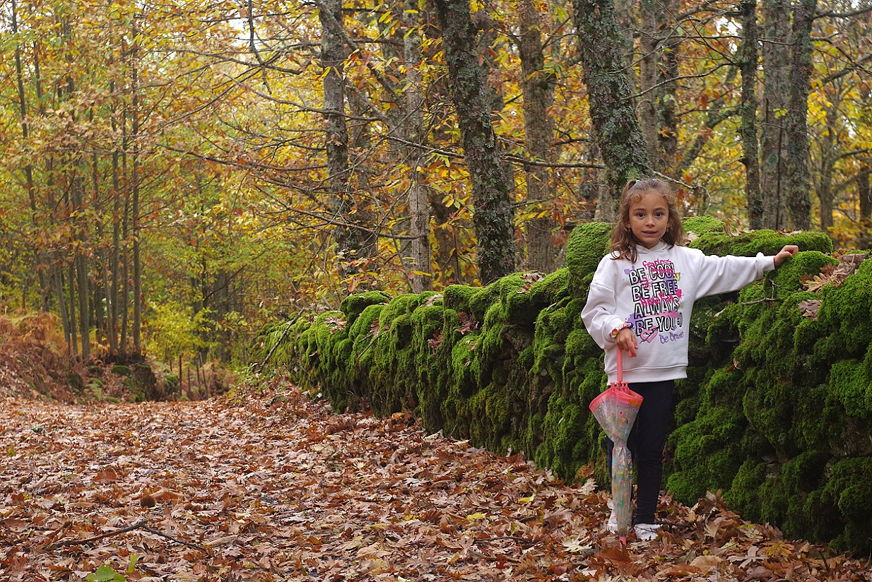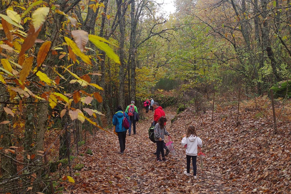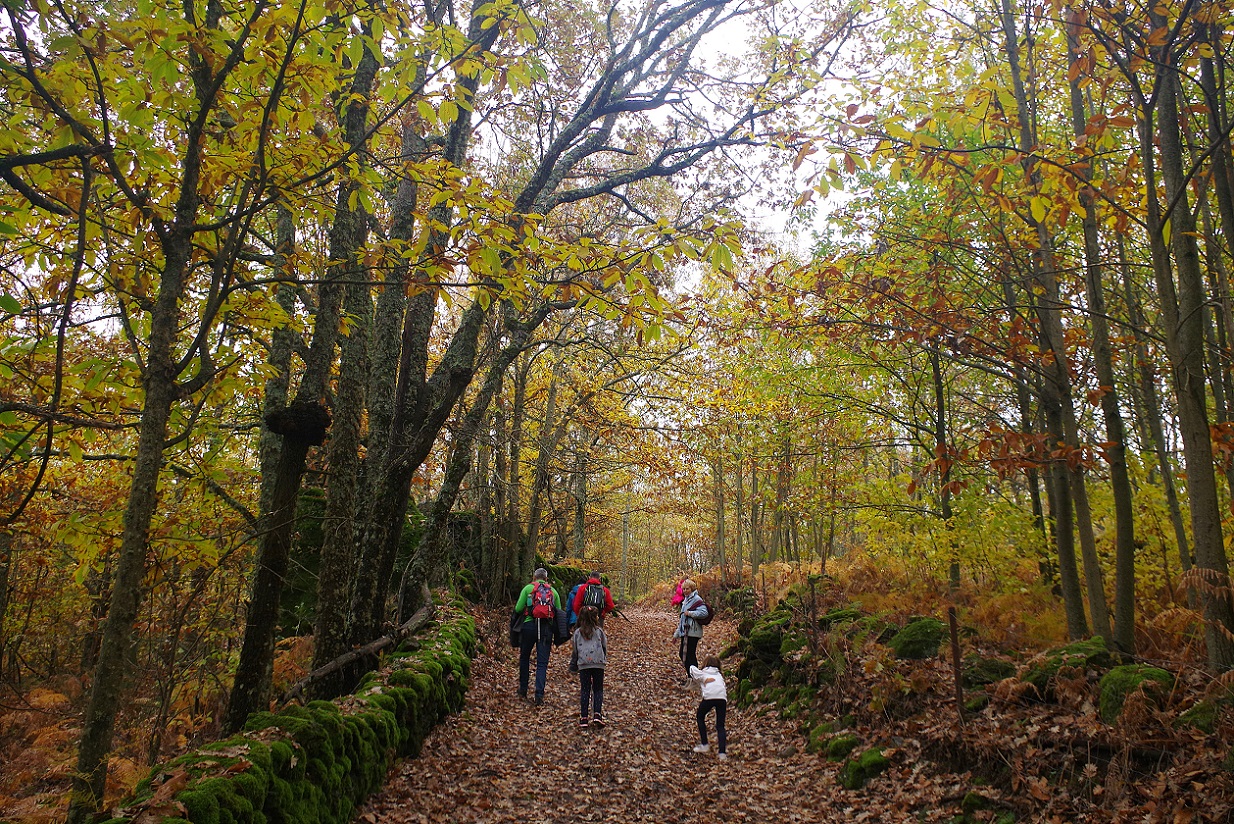 Las niñas estaban encantadas. Cada una llevaba una bolsa, e iban cogiendo cantidad de castañas que estaban en el suelo directamente sobre el camino. El plan era asarlas luego en la chimenea de la casa, por la noche. El bosque estaba magnífico, sin duda Noviembre es la mejor época para recorrer estos bosques de castaños, que se visten de mil colores antes de tirar todas sus hojas para el invierno.