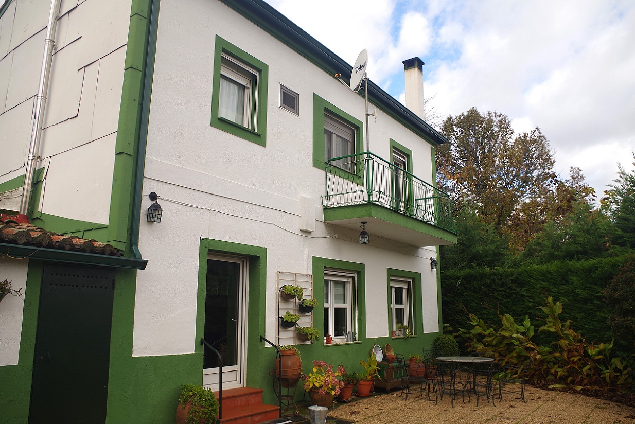 La casa que habíamos alquilado estaba a las afueras del pueblo de Puerto de Béjar, en Salamanca. Se trata de una casa antigua muy bien rehabilitada, con cuatro habitaciones. La habíamos reservado por booking a muy buen precio, tan sólo nos costó 450 euros por el fin de semana completo (dos noches), y éramos ocho personas. Nos resultó una casa muy acogedora, y muy bien situada, ya que al estar a las afueras del pueblo era muy tranquila, y además estaba justo al lado de un castañar muy chulo, sin necesidad de coger el coche.