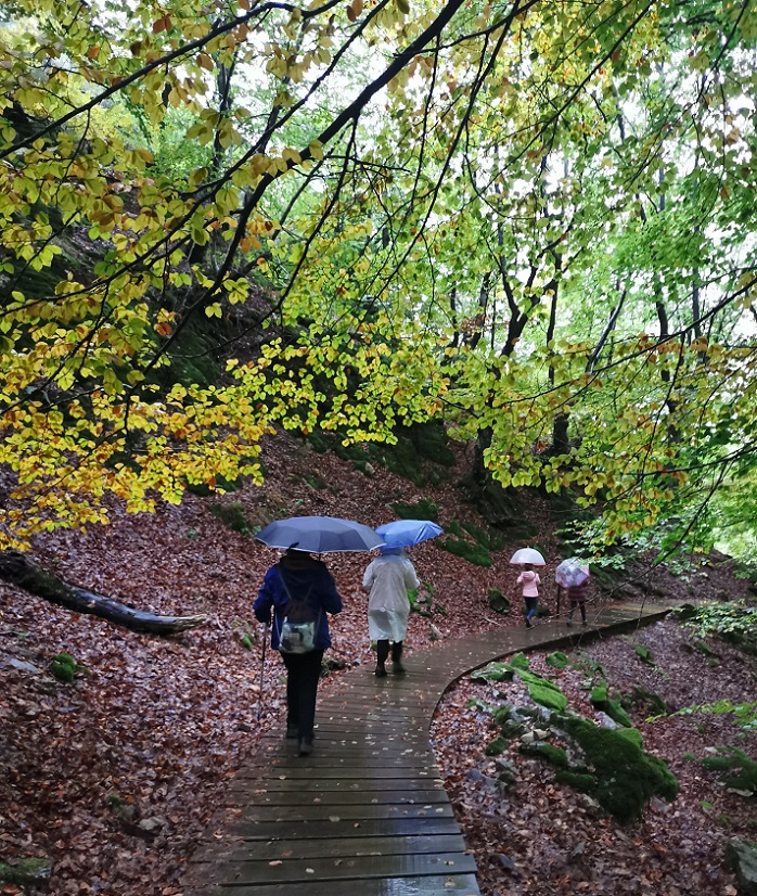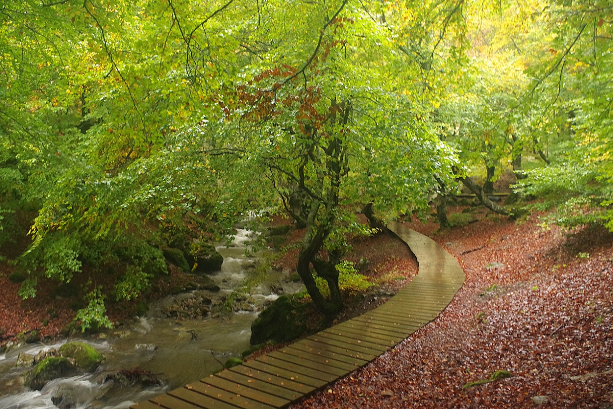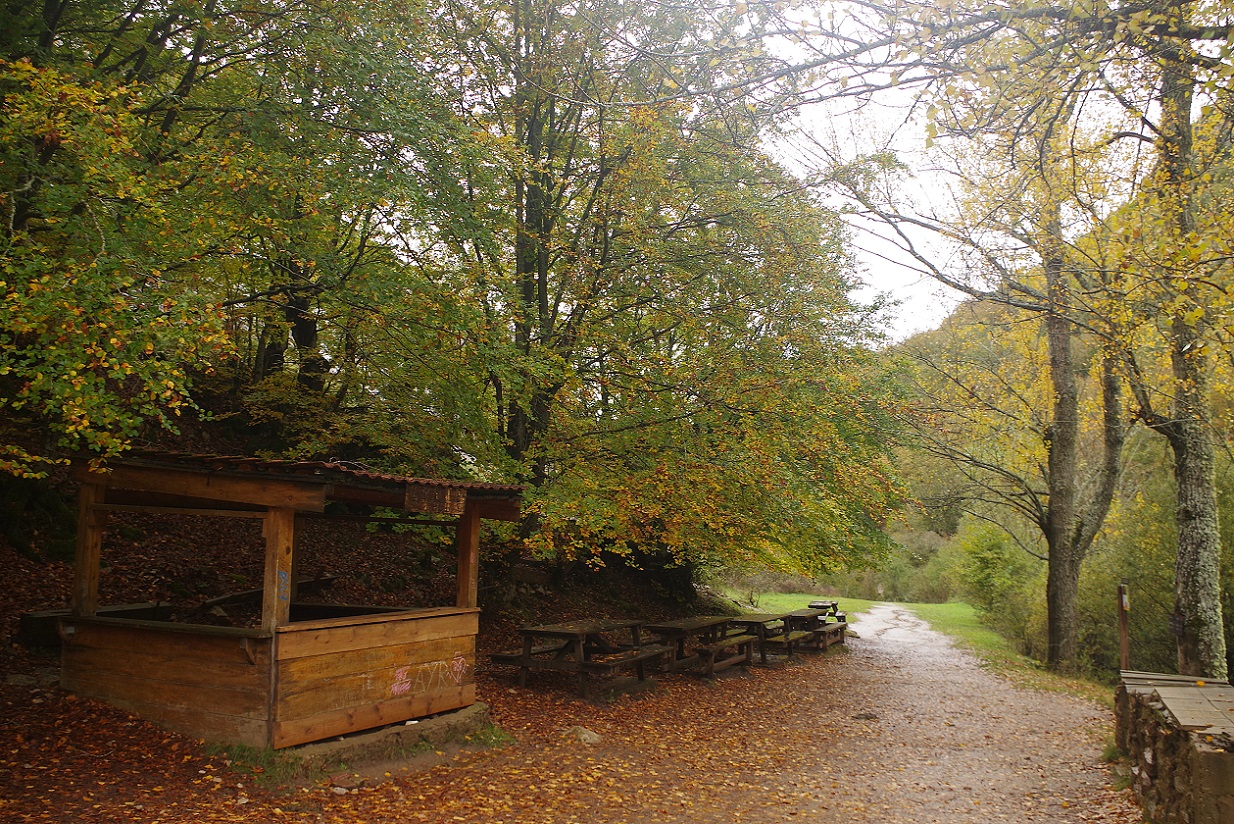 - A mitad camino, antes de entrar en el hayedo en sí, hay un fantástico merendero con bancos y mesas junto al arroyo.