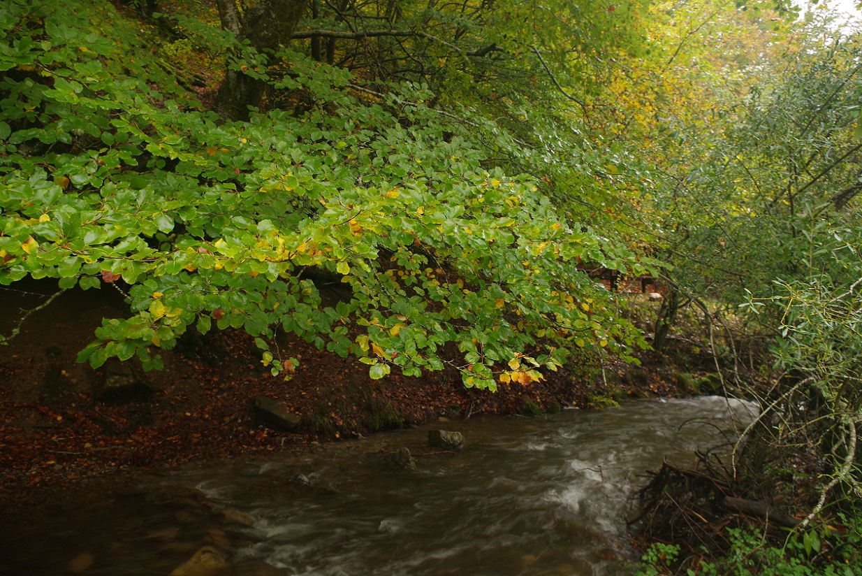 Ya iba quedando poca luz, y además empezó a llover de nuevo, así que dimos la vuelta desde este haya formidable. Aún se puede seguir más, hasta llegar a un pequeño desfiladero formado por las aguas del arroyo, pero eso quedará para otra ocasión.