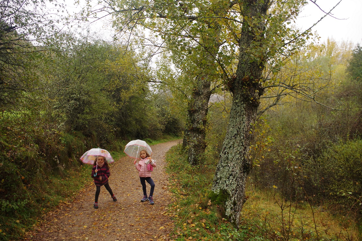 Esta primera parte, aunque no es hayedo, es un sendero muy agradable que va por un bosque de ribera (ya que el camino discurre paralelo al arroyo) de chopos y álamos, que en Otoño también adquieren unos colores dorados muy bonitos. El camino es muy sencillo, sin desnivel, un paseo apto para cualquier persona, como podéis ver en las fotos.