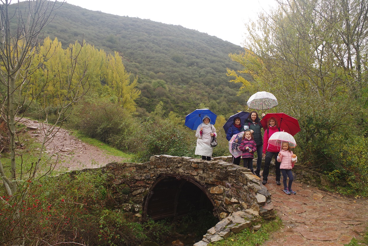 Volvimos sobre nuestros pasos, hasta llegar al puente de hierro que marca el comienzo del bosque, y continuamos nuestro camino hasta llegar a los coches en el pueblo de Ciñera de Gordón, la última parte ya con lluvia más intensa. Y desde aquí, a nuestra casa en Cerezales, donde nos esperaba otra fabulosa cena en el restaurante del pueblo.