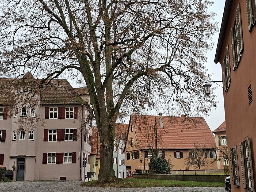 Ya con el estómago lleno, salimos otra vez a la calle. En la foto de abajo a la derecha, se ve una de las puertas de la muralla, junto a la cual está la Spitalkirche, una antigua iglesia vinculada a un hospital medieval. En su patio trasero es donde se instala parte del mercado navideño de la ciudad, que a esta hora está cerrado por ser lunes (no abre hasta las 14:00).