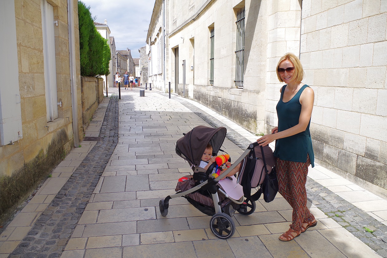 Esta visita forma parte de un viaje que hicimos en coche para recorrer el valle del Loira y la región del Perigord. Salimos desde Villaviciosa de Odón, y como el camino es muy largo, decidimos hacer una noche entre medias, en el bonito pueblo medieval de Saint Emilion. Era el primer viaje al extranjero que hacíamos con Inés, que en ese momento tenía 9 meses.