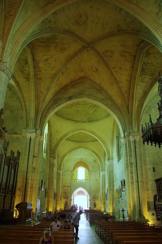 Las dimensiones son impresionantes: unos 38 metros de largo, 20 metros de ancho y hasta 11 metros de alto. Por algo es la iglesia excavada en la roca más grande de Europa, y la segunda del mundo (la mayor es una iglesia en Etiopía), y una de las razones de que Saint Emilión sea Patrimonio de la Humanidad. Más adelante, sobre mediados del siglo XIII, fue levantado el campanario que se ve en una de las fotos, construído directamente en el techo de la roca en la que se excavó la iglesia.