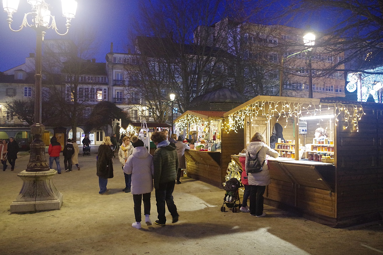 La catedral comenzó a construirse en el año 1129 en estilo románico, sobre otra anterior visigoda. Su construcción duró mucho tiempo, no se acabó hasta 1273, con lo que gran parte del edificio ya se hizo en estilo gótico, como puede verse en las altas bóvedas de crucería. El claustro (arriba a la derecha) ya es barroco del siglo XVIII. Después de esta visita, fuimos dando un paseo, ya completamente de noche, hacia la plaza mayor, para ver el mercado navideño en todo su esplendor.