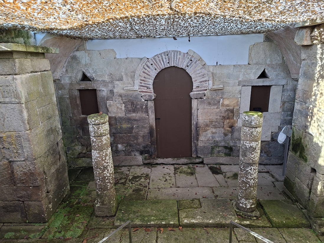 Una auténtica pena que estuviera cerrado, porque la cripta que se conserva es un espacio único en el mundo romano, con las mejores pinturas originales romanas conservadas en España. La puerta de entrada que podéis ver en las fotos, que estuvo tapiada y enterrada durante siglos, tiene el arco de herradura más antiguo de España (posible origen visigodo). Si queréis saber más sobre la utilidad original de este templo, en la wikipedia viene una muy buena explicación sobre este antiguo templo romano y también tenéis un video muy interesante del ingeniero Isaac Moreno Gallo, gran divulgador sobre ingeniería romana, en el que analiza esta iglesia de Santa Eulalia de Bóveda.