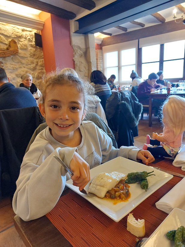 Y después de ese breve paseo, a comer. Inés se pidió un plato de bacalao, como podéis ver en la foto de arriba. La verdad es que las dos veces que hemos estado aquí hemos comido muy bien. Y después de comer, tocaba la gran paliza de casi cinco horas de conducir hasta casa, de las cuales más o menos las dos primeras fueron dentro de la niebla más persistente que he visto nunca.