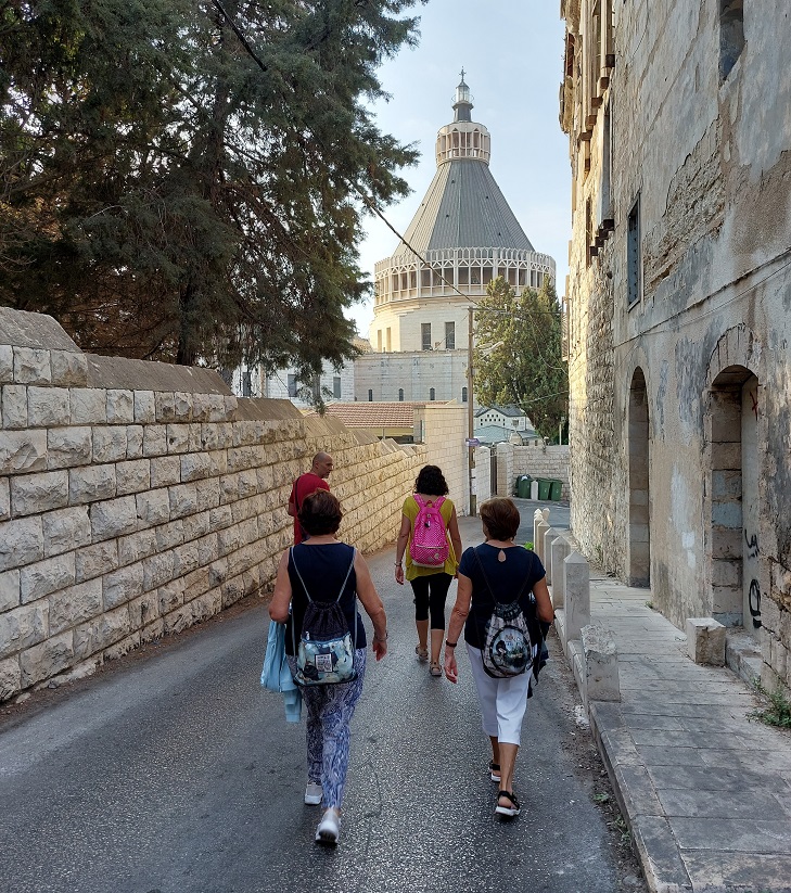 Tercer y cuarto día de nuestro viaje a Israel. Por la mañana nos habíamos dedicado a recorrer la antigua y evocadora ciudad de Cafarnaum, la ciudad de Jesús. Podéis leer el relato aquí. Después de comer, fuimos a Nazaret, donde debido al tráfico a la entrada de la ciudad llegamos ya tarde, con las últimas luces del día.