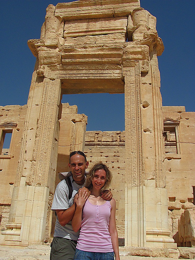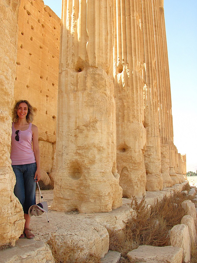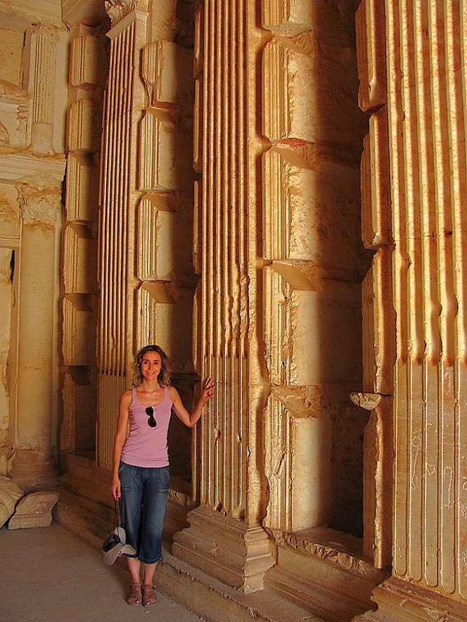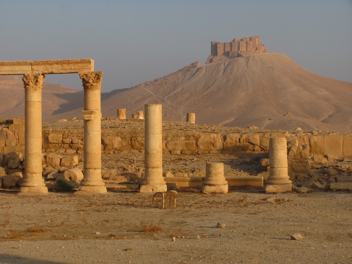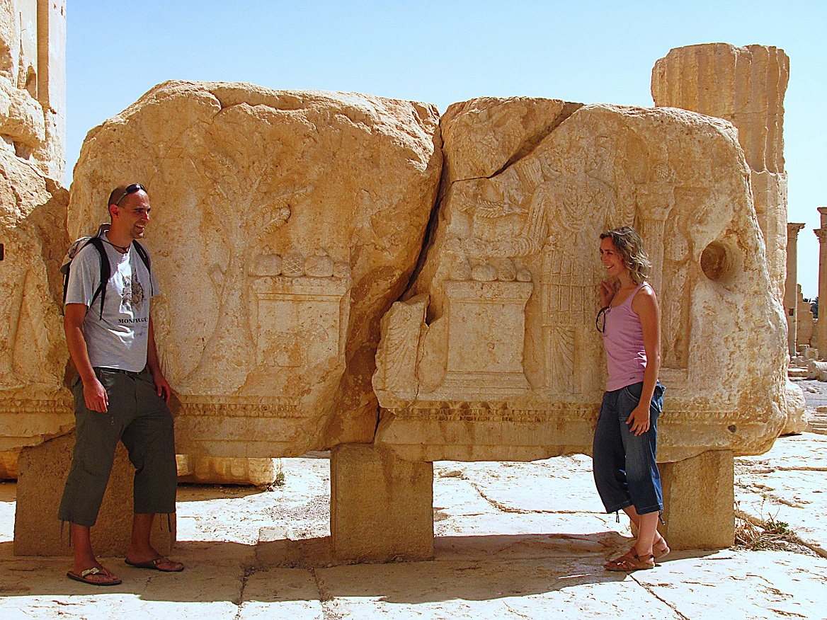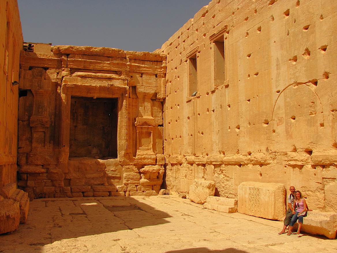 El taxista, naturalmente, quiso saber cual era nuestro plan para los siguientes días, para convertirse en nuestro conductor personal. De esta manera, quedamos con él por la tarde para que viniera a buscarnos y nos subiese al castillo, desde donde se ve un atardecer realmente maravilloso. Una vez instalados en nuestro señorial hotel, fuimos dando un paseo a visitar las ruinas de Palmira, empezando por uno de sus edificios más espectaculares, el templo de Bel. Nos quedamos sin comer, pero es que sino no íbamos a poder ver con tiempo el templo, es lo que tiene el turismo extremo.