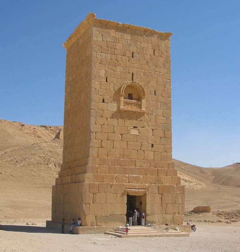 A la hora convenida, apareció nuestro conductor y fuimos hacia la torre de Elahbel, del siglo I d.C. y que fue volada por el estado islámico en el año 2015, como el templo de Bel. Abajo podéis ver una imagen del exterior de la torre, y varias del interior. Por dentro, al ser una torre funeraria, tenía varios nichos en altura con unos resaltes para apoyar los sarcófagos.