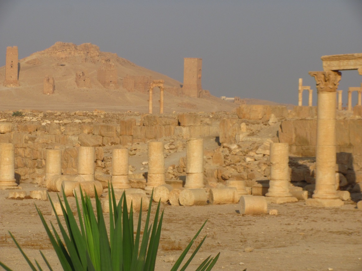 Recorrimos todo el complejo del templo de Bel, que son varios edificios y recintos con columnatas, como podéis ver en las fotos de arriba. Una vez visto esto, volvimos al hotel, porque hacía mucho calor, eran las horas centrales del día en pleno desierto sirio, y en Agosto. Allí estuvimos descansando un poco en el salón del hotel, tomando algo, mientras hacíamos tiempo hasta la hora en que tenía que venir a buscarnos nuestro taxista, para llevarnos a ver las torres-tumba situadas a las afueras de la ciudad, y luego al castillo para ver la puesta de sol.