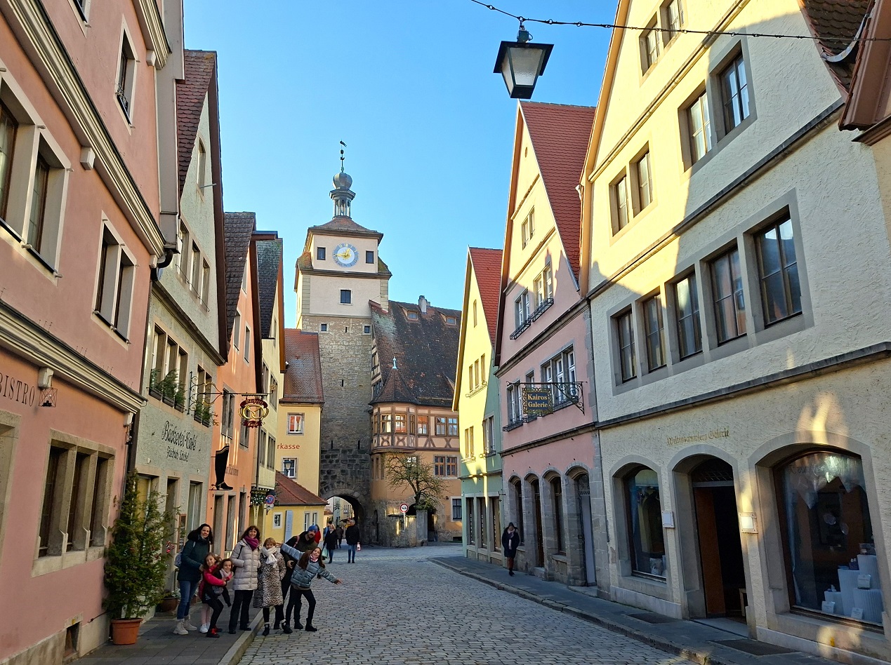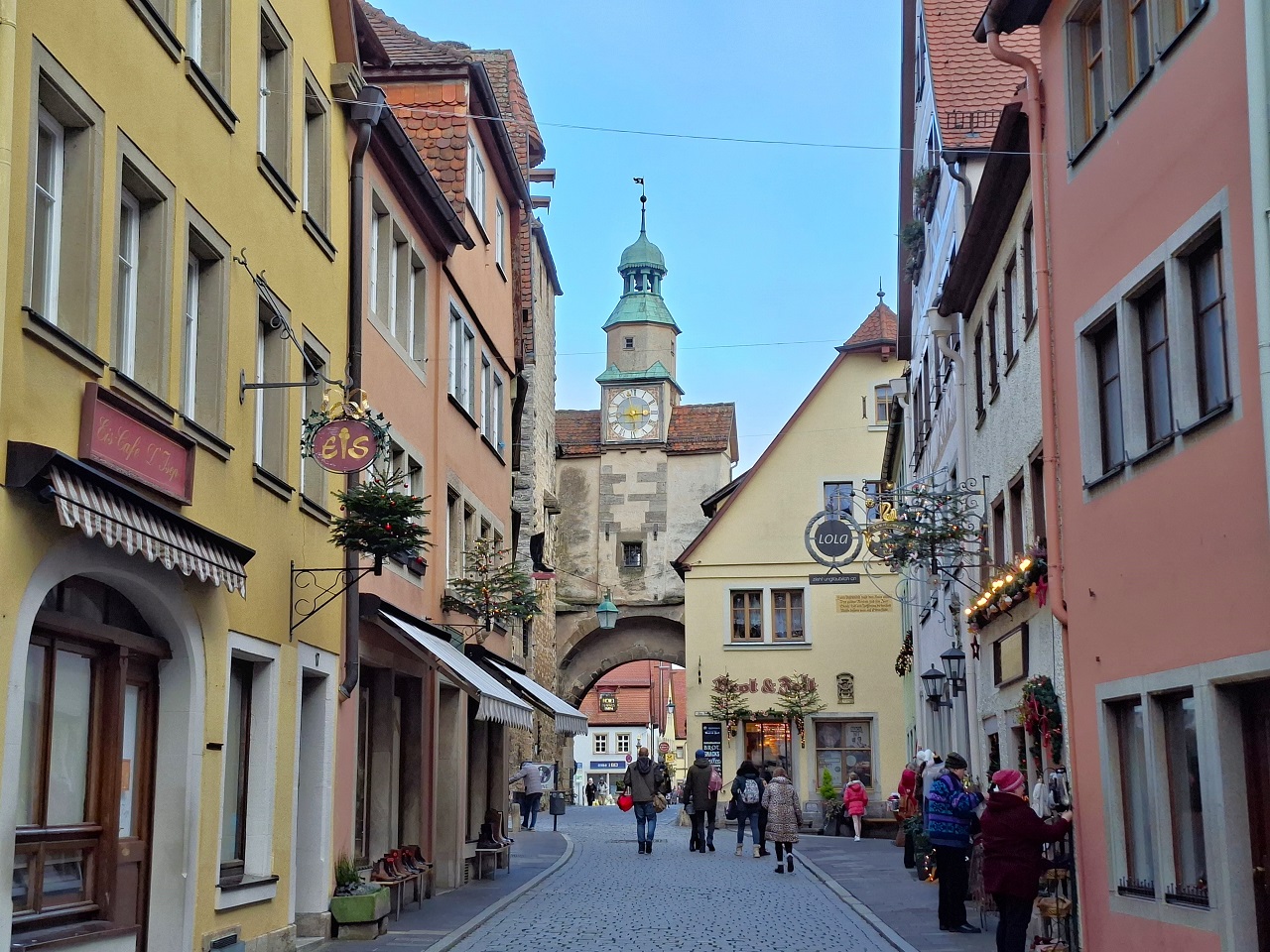 Después de ese paseo por el adarve de la muralla, volvimos de nuevo hasta la torre Siebersturm para bajar de allí, y seguimos el paseo por la Obere Schmiedgasse hasta la plaza, desde donde fuimos por otra calle hasta otro de los rincones más fotografiados de Rothenburg, la puerta Rödertor, una imagen icónica de la ciudad desde ambos lados de la puerta. Es una de las más antiguas de la ciudad, y ha conservado intacta su estructura medieval.