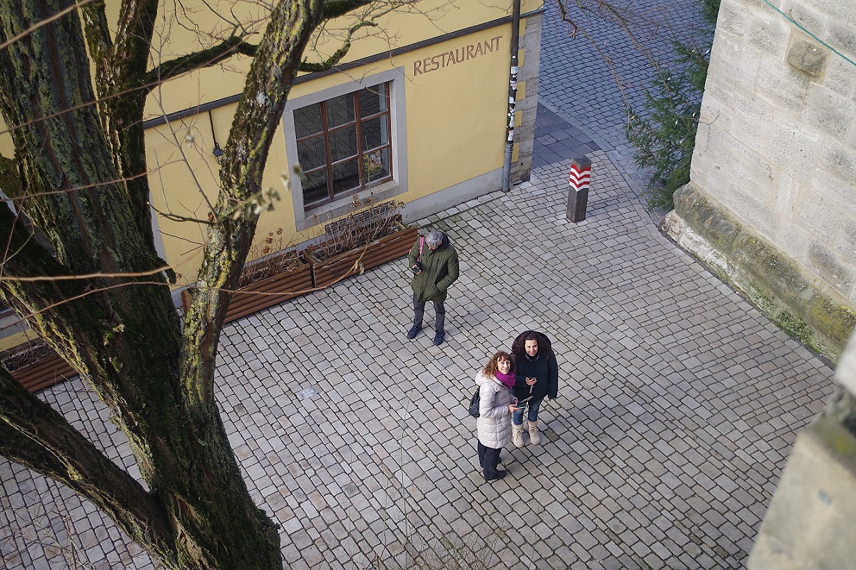 Venir hasta esta última puerta ya costó algunas protestas de las niñas, que querían comer ya. Era hora de buscar un sitio bonito donde descansar un poco y llenar los estómagos. Callejeamos un poco camino de la Marktplatz, preguntando en un par de sitios que, o estaban llenos, o ya era tarde para comer.