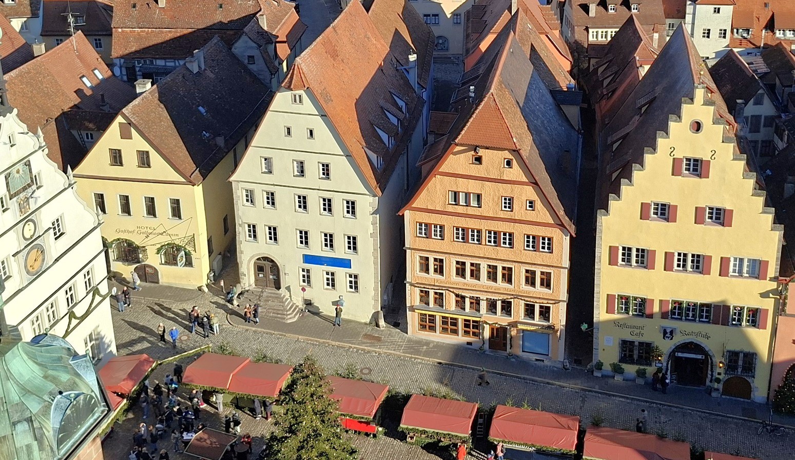 Esta torre es la más alta de todo el casco histórico, y si hay una actividad realmente imprescindible en Rothenburg, es subir hasta arriba. Son 220 escalones que te llevan a un mirador de 360 grados a unos 54 metros de altura. De ve toda la ciudad hacia cualquier lado, es absolutamente genial. Mejor subir cerca del atardecer, que la luz será mejor (en nuestro caso aún faltaban unas tres horas para la puesta de sol).
