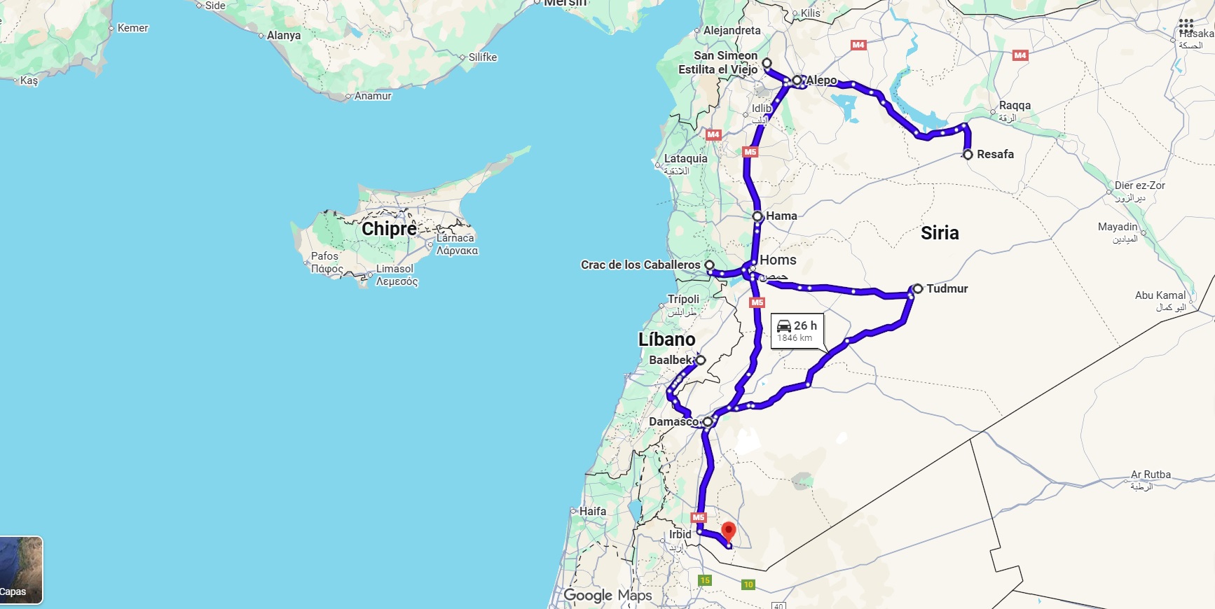 Una verdadera lástima la guerra que vino después, al año de nuestro viaje. Espero que pronto pueda volver a ser un pais donde aquellos viajeros intrépidos puedan disfrutar de lugares maravillosos y únicos que aun están fuera de las hordas de turistas que inundan muchos otros destinos. Nosotros, como podéis leer más abajo, a parte de Siria hicimos una incursión de un día al Líbano, para ver los templos de Baalbek, y luego estuvimos unos días en Jordania, para acabar con un par de días en Chipre. Y todo, en 14 días completos.