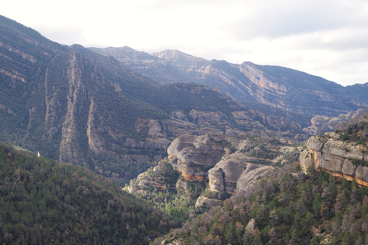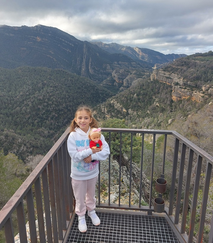 Al final Inés durmió más de la cuenta, y llegamos directos sin paradas hasta el mismo parque natural del Montsant, donde hicimos una parada en un mirador llamado "Les crestes de la Llena", para que se despertara ya. Había dormido en el coche más de cuatro horas seguidas. Abajo podéis ver unas fotos en este mirador, estábamos ya cerca de Siurana, nuestro destino.